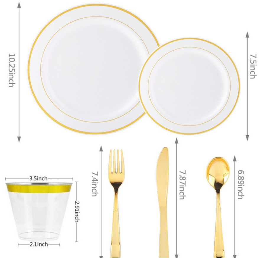·  Product Name: PS 7.5-inch (Gold Rim, Rose Gold Rim, Silver Rim Plastic Round Plates)